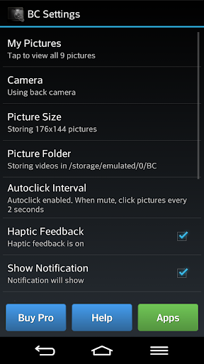 Background Camera is the ONLY camera app in the market that takes pictures in the background so you can use your phone as normal. You can even turn your phone screen off and click pictures! NO ONE can tell you are clicking pictures.