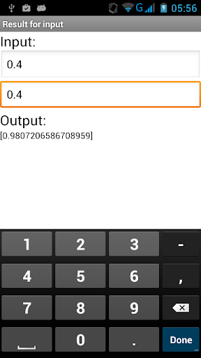 A simple example of backpropagation algorithm. Learn small neural network basic functions like predefined examples: AND, XOR or 2D distance. Import and export of custom tasks from and to xml or well readable csv. Integration with www browser. Creating new or editing loaded tasks in an editor is also possible. You can show the network anatomy and all weights and also the result with marked training set or exact output for set input. If learning failes, restart whole learning algorithm or just single neuron weights. Alpha learning speed is automatic and configurable. Help on each screen. This program may be useful for students of a basic course of artificial neural networks. It illustrates well that learning of neural networks is a complex task and basic backpropagation without any improvements can only solve very simple tasks.