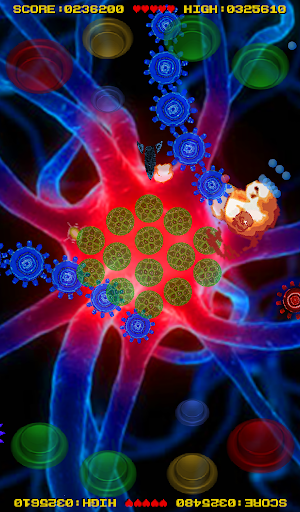 Two player simultaneous action: Bacteria™ Arcade Edition also features a two-player ‘cocktail’ mode, played like a retro cocktail table arcade game in which two players face each other and cooperate to save the cells and defeat the invading bacteria.