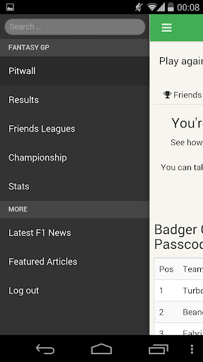 This app is to enable playing along with Fantasy Grand Prix easy with a phone or tablet device. This Fantasy GP app allows you to manage your team and predictions on the move as well as check your results and play against friends in mini-leagues.