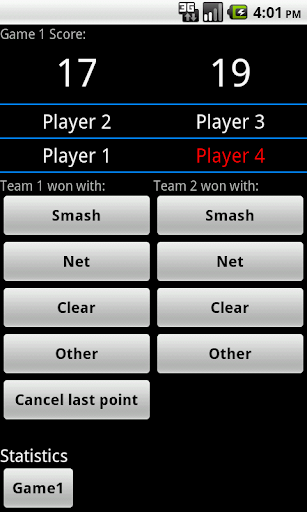 Application keeps badminton score and shows players positions on court for doubles and singles games.