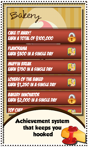 Bakery World tracks stats of everything you do. The number of customers you’ve served, the amount of cash you’ve earned, number of days you’ve spent in the game – everything. The better you play, the more achievements you’ll unlock, and the more you can boast about it to your friends. This is the story of your very own bakery!