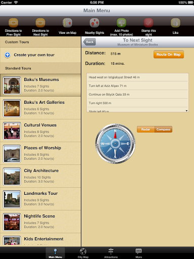 This handy application presents you several self-guided walking tours to see the best of the Baku, Azerbaijan, and it comes with detailed tour route maps and powerful navigation features to guide you from one sight to the next. No need to hop on a tour bus or join a tour group; now you can explore all of the best attractions on your own, at your own pace, and at a cost that is only a fraction of what you would normally pay for a guided tour.