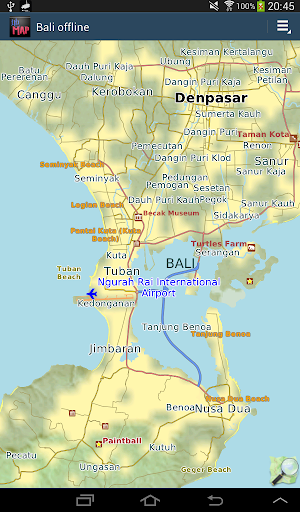 Offline map of the island of Bali, Indonesia for tourist & business visitors. Download before you go and avoid expensive roaming charges. The map runs completely on your device; display with pan and zoom, routing, search, bookmark, everything. It does not use your data connection at all. Switch your phone function off if you want to! NSA proof!