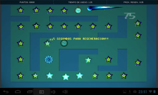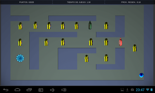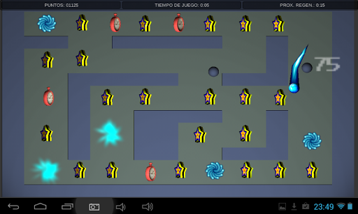 Mueve el dispositivo para mover la bola por el laberinto y llevarla hasta los powerups evitando los mortales vórtices durante 2 minutos. Cada 20 segundos, los elementos de juego se regenerarán aleatoriamente y con cada regeneración aumentará la dificultad. ¡Aumenta tu puntuacion antes de que termine el tiempo!