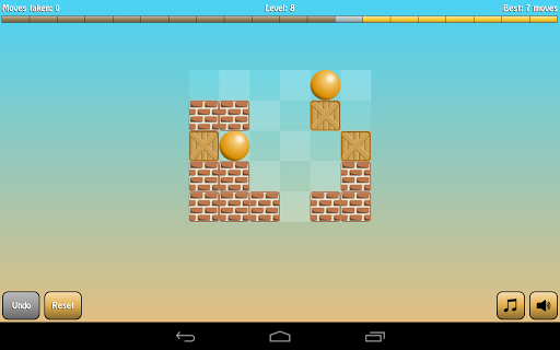 Your goal is to make the yellow balls fall out of the level by pushing them with moveable crates and removing the support under them. You win the gold cup for each level by solving it in the fewest possible moves.