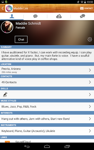 • Create your musician profile and highlight your skills, instruments, influences and interests