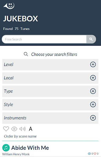 The Application contains an index of songs, compositions and etudes (tunes) and corresponding play-along audio files that can be served from your device. BandPad enables you to see musical score (depending on your screen size) and controlling the corresponding play-along.