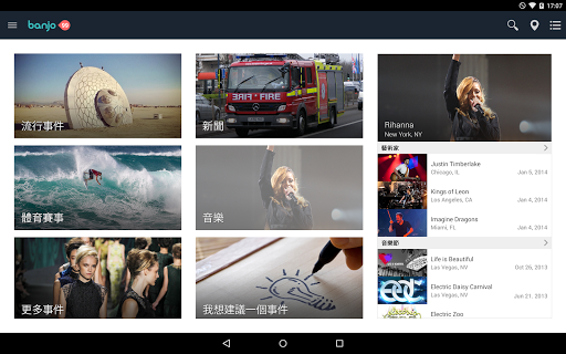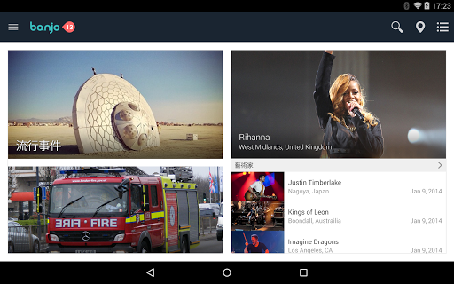 無論您身在何處,Banjo都可為您精彩呈現世界各地最新發生的大事件。您可以瀏覽音樂,體育,熱點新聞等等,查看在現場的人們發布的實時帖子。Banjo與最大的社交網絡相整合,讓您可以實地查看任何地方或事件…給您身臨其境般的感覺!