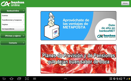 La banca electrónica móvil para Android es una oficina móvil desde donde es posible realizar las operaciones financieras más habituales: consultar posiciones de cuentas y tarjetas, ver la correspondencia electrónica o realizar transferencias a otras cuentas.