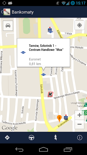 -nawigacja do wybranego bankomatu (samochodem lub pieszo)
