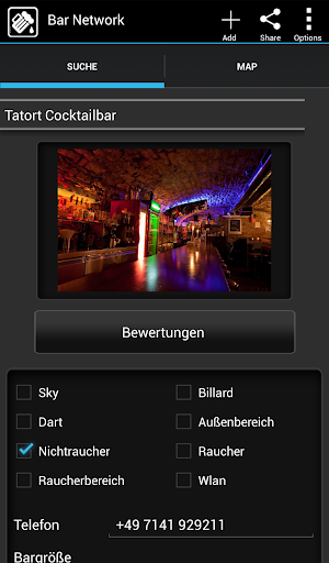 – Bars zu bewerten und die Eigenschaften (Stichwort: Suchfilter) sowie Informationen (Öffnungszeiten, Telefonnummer) zu bearbeiten
