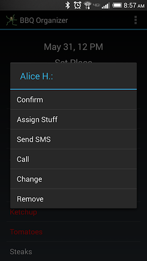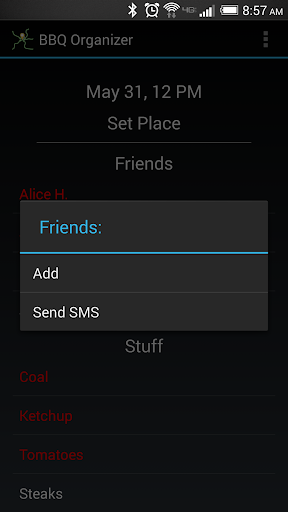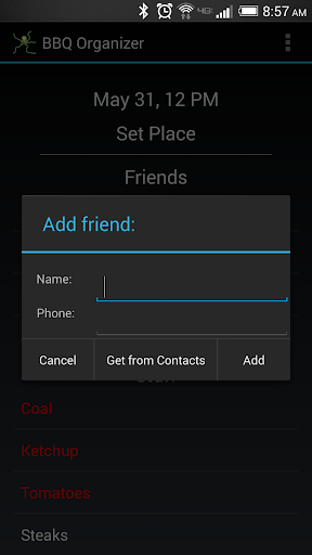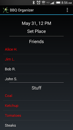 Barbeque Organizer is for people who like to have barbeques, picnics, and parties with their friends and family. The application allows tracking who is invited and has confirmed what they will bring. If the place or time of picnic is changed Barbeque Organizer can update all of friends in a couple of clicks.