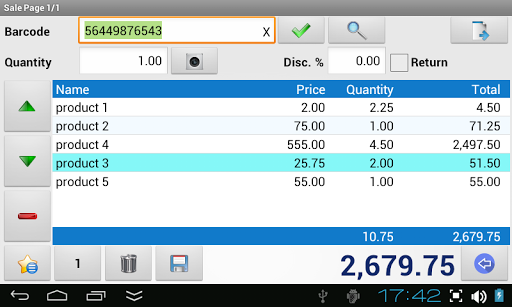 ●You can display photo, name and price of the product largely on the screen by the help of "show price" section as the barcode of the product is read by device camera or by an external barcode reader or chose the product from the list.