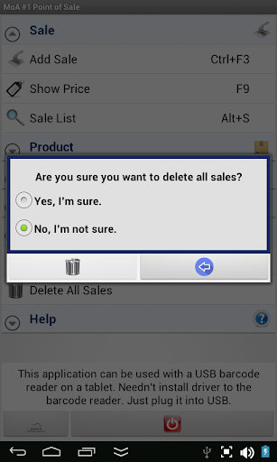 ●When you wish, you can delete all sales by a single tab. As a result of this action, only the sales are deleted, records or product are not deleted.