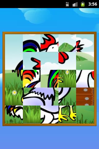 A barnyard and farm animal themed sliding puzzle game. Touch the tiles move them into the correct place and complete the puzzle. More pictures are unlocked when you successfully complete puzzles.