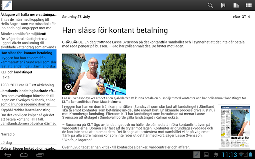 Du kan välja att läsa artiklarna i ett tidningsläge där du bläddrar bland sidorna och zoomar in på sidan. Ett annat alternativ är att klicka på en artikel – då öppnas den i ett läsvänligt fönster tillsammans med bilderna som hör till artikeln.