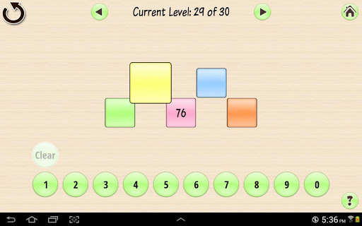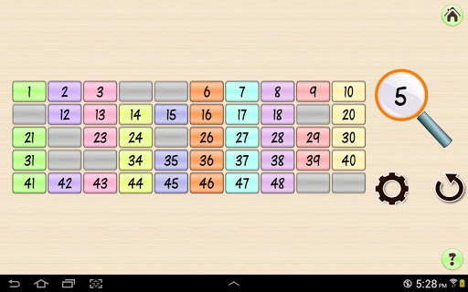 6. Fill in puzzle, partial numbers grid is shown with numbers missing, the kids are asked to fill in the empty tiles, there are no multiple choices, they have to use buttons to key in numbers, so no guessing. These puzzles will really strengthen the kids number grid skills. They will master the number grid in their mind's eye.