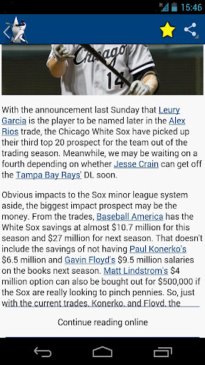 In the Shortcuts section you have shortcut buttons to information such as scores & schedule, stats and injuries. There is also a countdown timer for important dates as well as a My Team button, select you favorite team in the settings menu, and when pressed it will take you to that teams site on MLB.com.