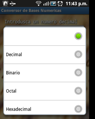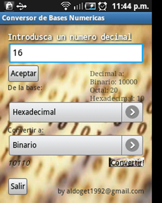Pequeña Aplicacion para convertir bases numéricas como decimal, octal, binaria, hexadecimal