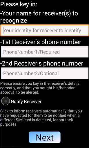 You can assign a friend or relative to this app, and in the event that your SIM card is replaced ( because of theft, for example), a SMS notification together with your phone IMEI number (for identifying your phone later on) will automatically be sent to your chosen friend/relative to alert him/her using the new SIM card user's phone number.