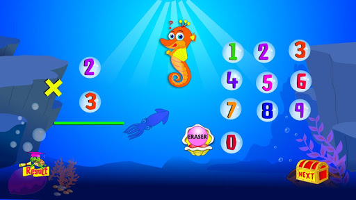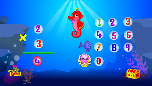This is a cool Math learning and practice app for children for learning Multiplication by single digit. A magic Sea horse gives different problems and guides the child. It points out mistakes (like wrong multiplication, forgot to add carry etc.), monitors child’s progress and increases the complexity of problems as child becomes better. It also teaches the child multiplication, step by step by using multiplication table in an animated way when child can’t solve the problem. The child can touch the Report Card icon to see the progress.