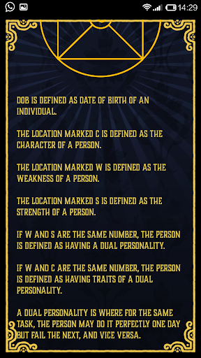And it is so easy to use as well! Simply insert your date of birth and scroll down to read the brief character descriptions before swiping the character chart left for the yearly chart and once more for the direction chart. It's great for impressing friends and anyone at parties!
