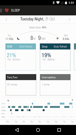 Peak automatically tracks when you fall asleep and wake, offers REM, Light and Deep sleep insights and counts your tosses and turns.