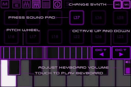 Perform synth bass lines with 7 retro and modern keyboard bass sounds over a massive 5 octaves. Warp and edit sounds using the volume envelope and slide the pitch bending wheel to create c bass melodies.