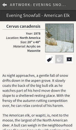 This app lets you get more out of your experience at the Centre by giving you access to additional information about the paintings, audio/video interviews and stories from Robert Bateman himself, and facts about the wildlife portrayed. To start, press the 'Scan Artwork' button, then point the camera at the QR code next to one of the paintings.