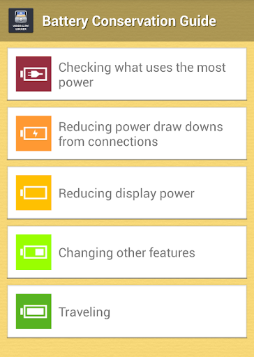 Contents in this Battery Conservation Guide app :