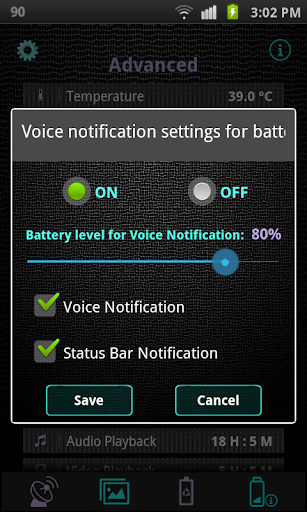 - 语音和状态栏,的通知 对于-电池水平于要求