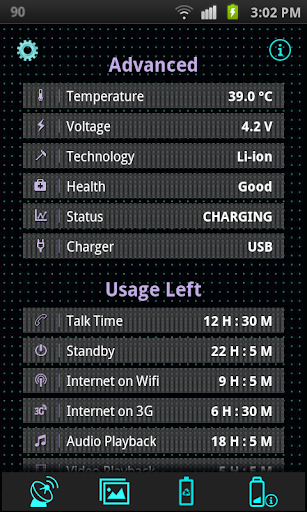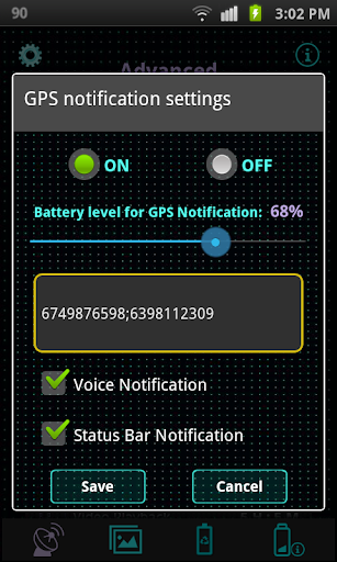 “智能GPS电池”就是一个非常酷的应用程序,以知道你的,的手机电池水平,温度,使用-左,充电状态和AC / USB/无线动力源堵塞。它配备了非常简单的设计,布局工整,较少的尺寸和丰富的UI。它有许多功能,以了解你的电池的功能。其主要特点是 GPS的位置-的通知通过手机短信 这可以帮助您要知道关于最后一个位置你的亲人,时他们的手机没电了。