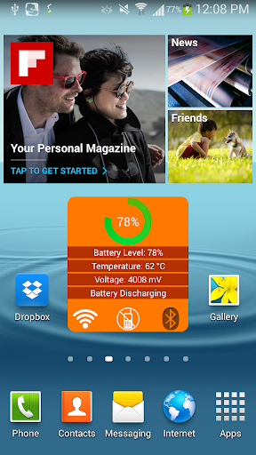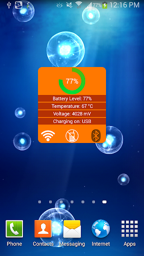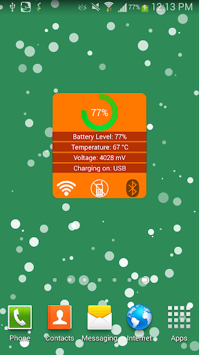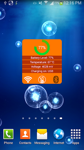 Battery Status Widget is an elegant widget which shows you the battery level on your home screen. Tapping on it will show more battery information with a shortcut to view battery use. Now Battery Status Widget can help you save battery by letting you control device settings such as WiFi, Bluetooth, silent and more.