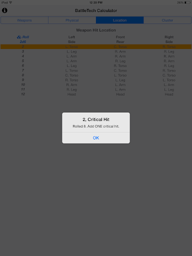 * Hit location tables and cluster hit tables for missiles, with integrated dice rolling.