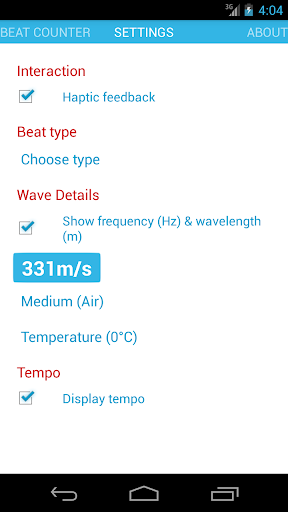 There is an optional vibration feedback for each beat tapped and ability to display the current tempo.