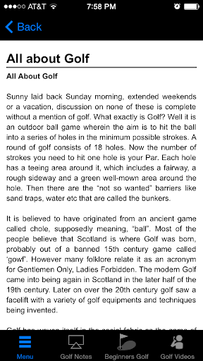 This a fantastic App for Beginners in the Mastering the Basics of Golf !