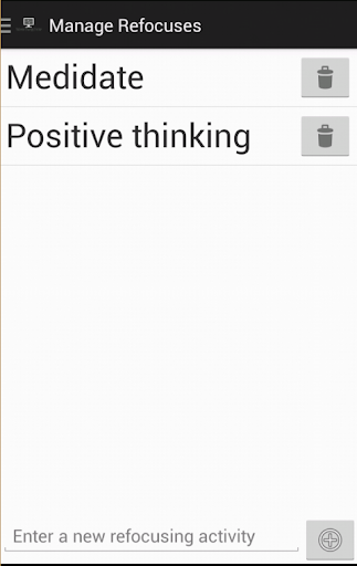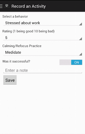 By recording an activity whenever you feel stressed, anxious, or a compulsive behavior, the application will aid you in becoming more conscious about your thoughts. As you become more conscious, you will be able to stop and think about the behavior and using a refocusing activity to overcome the behavior.