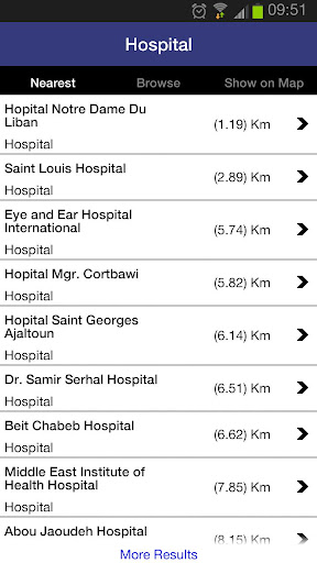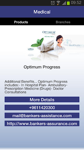 -Directory: Shows list of all Network Providers, divided by categories of covers, as per selected Insurer. It will enable you also to locate the provider’s address on a Map and then trace the shortest route, through GPS, to reach this provider.
