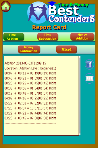 For Classrooms: Need a tool to make the students get better in computation? Want to track the progress of each and every child? Best Contenders app series has many different concepts and skill levels. In this series this is Time & Money.