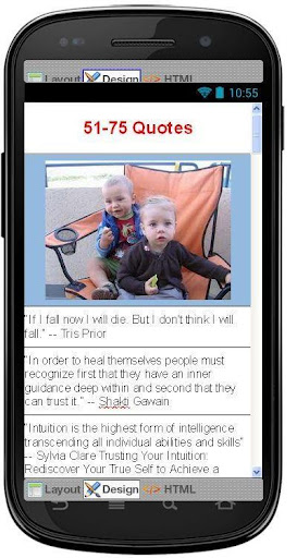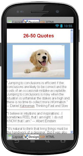 We hope you all like these superb android quotes application. Please Feel free to email us about any comments or suggestions and “Rate it 5” for our application to be improved. Developer Note : In case you face any problems do send us an email with information about your phone model, and the exact problem, and we'll try to fix it immediately.