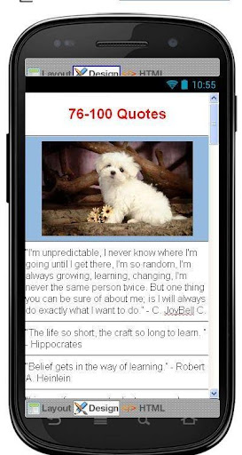 We hope you all like these superb android quotes application. Please Feel free to email us about any comments or suggestions and “Rate it 5” for our application to be improved. Developer Note : In case you face any problems do send us an email with information about your phone model, and the exact problem, and we'll try to fix it immediately.