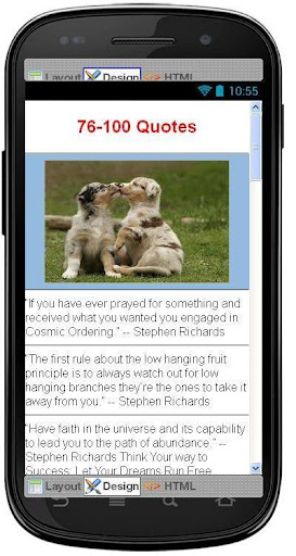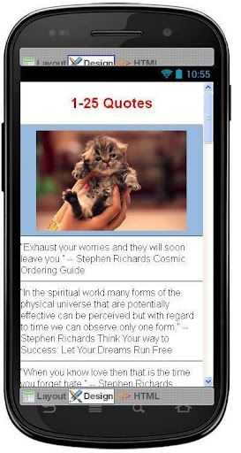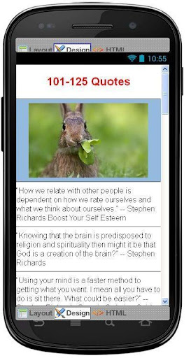 We hope you all like these superb android quotes application. Please Feel free to email us about any comments or suggestions and “Rate it 5” for our application to be improved. Developer Note : In case you face any problems do send us an email with information about your phone model, and the exact problem, and we'll try to fix it immediately.