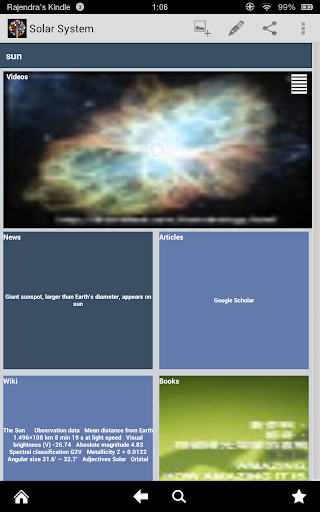 TRY THE FREE VERSION OF THIS APP BEFORE PURCHASING. Create research papers for schools and colleges quickly. Enter the area of research and application will displays latest news, videos, scholarly reports, wiki data and related books on Astronomy