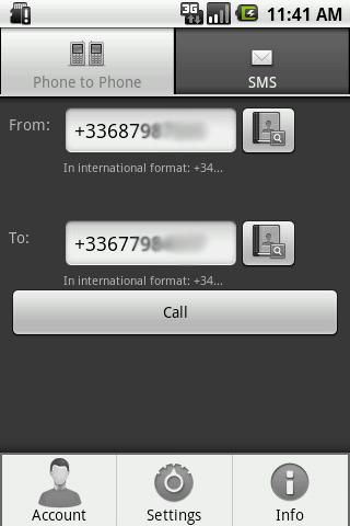 Use a BetaMax account service to call (callback) an other phone wherever in the world.