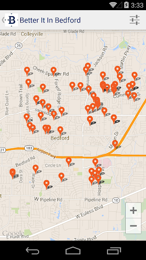 Better It In Bedford is a mobile app that enables service requests (potholes, graffiti, overgrown grass, etc) to be submitted directly to the City of Bedford, where it will be instantly routed to the correct department manager or supervisor. This means your service requests will be responded to quickly and efficiently, and you will be notified the instant they are resolved.