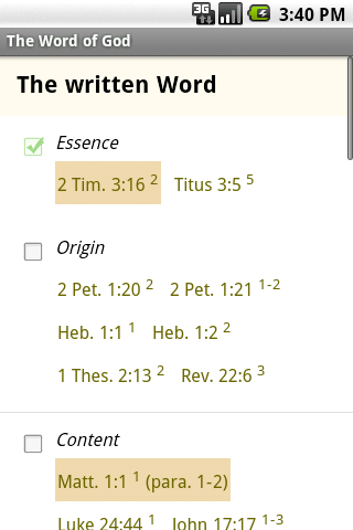 Study the Bible by major New Testament topics using over 120 concise studies in this app. Track your progress, share what you've learned with others, and increase your understanding of God's Word for a richer Christian walk. Don't have a New Testament Recovery Version? Order a free copy right from the app.