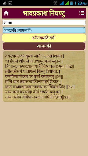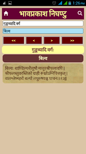 Android version of the text is first of its kind and is developed to make the text searchable basing on the text contents and by synonyms of the medicinal plants.