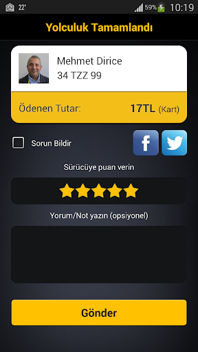 Taksi şoförü ve yolculuğunuz hakkında yorum yapabilirsiniz.
