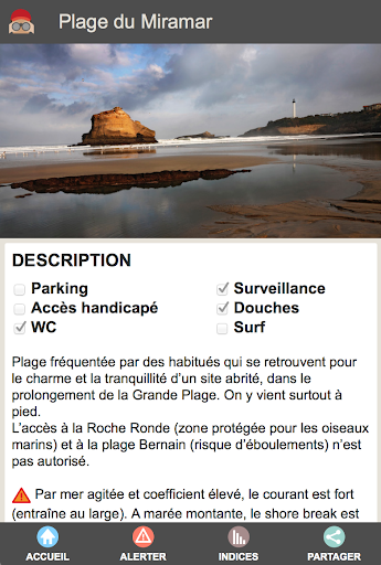 Elle vous permet par ailleurs de consulter la météo des plages et la couleur des drapeaux avant d’aller se baigner ou surfer à BIARRITZ.